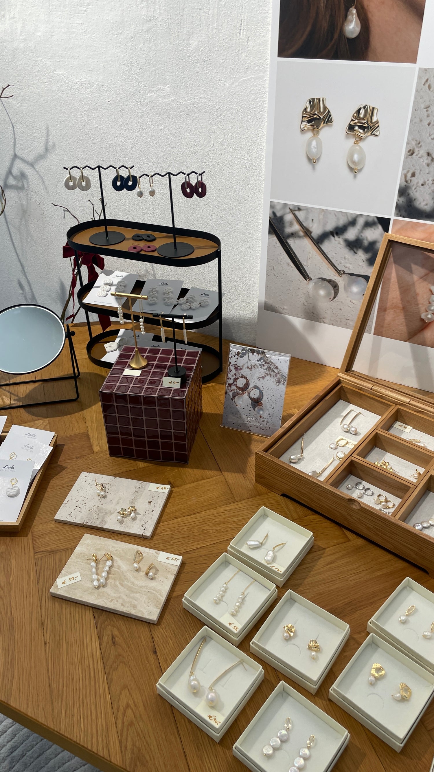 Bei Laola Collection werden alle Stücke in Österreich von Hand gefertigt – aus Polymer Clay, hypoallergenem 925er Sterlingsilber bzw. Edelstahl mit 18–24K Vergoldung.